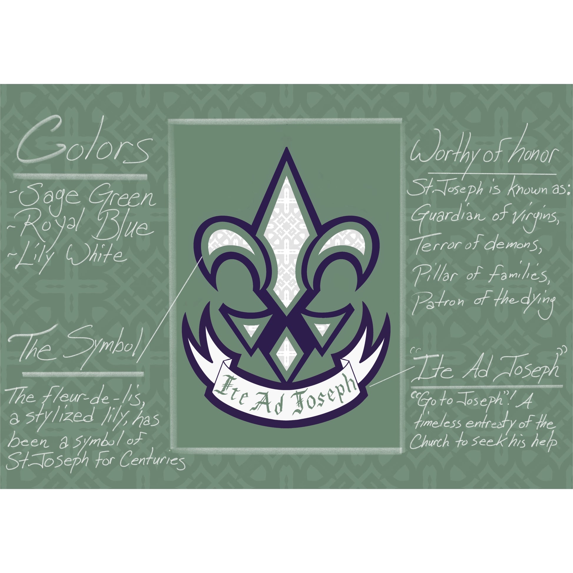 St. Joseph is always approachable, as this emblem reminds and encourages us. Remember our great intercessor the foster father of Jesus with this original artwork exclusively from Drawherty Design. All rights reserved.
