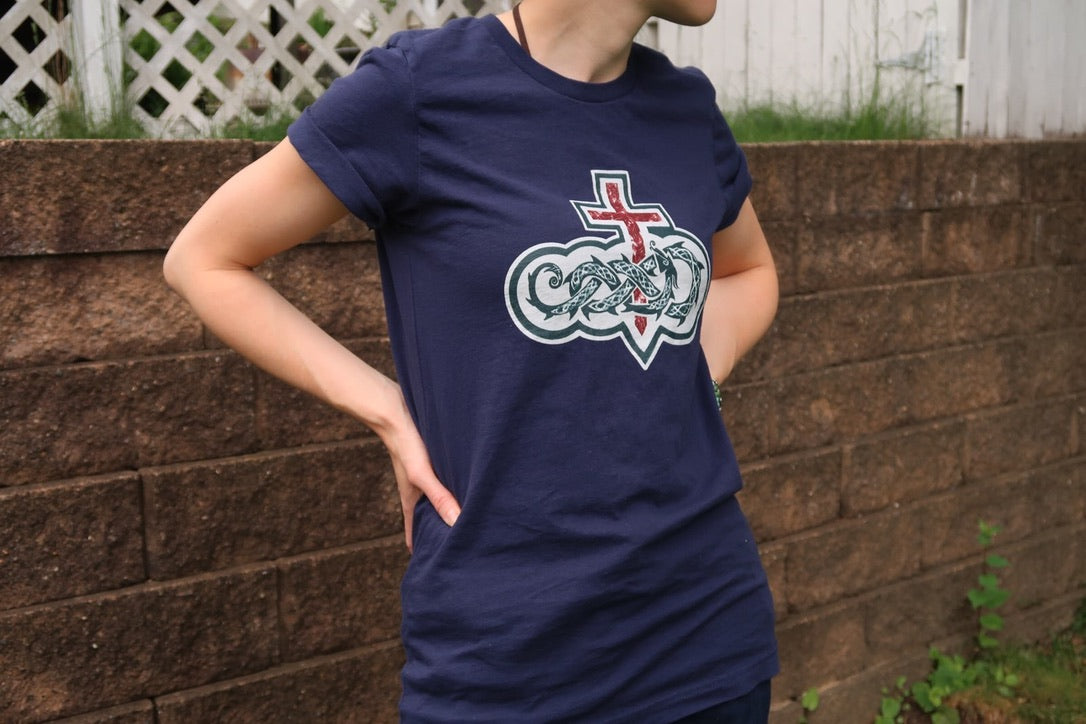 A tribute to St. George and all heroic efforts for holiness, this hand drawn logo evokes the lore surrounding the great and holy martyr and his legacy of inspiration, featuring a red cross pierced through a stylized serpent-like dragon.